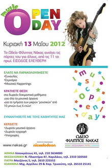 Ευκαιρία για τους μουσικόφιλους να μάθουν τα πάντα για τη μουσική και για τα μουσικά όργανα, την Κυριακή 13 Μαΐου από τις 11 το πρωί, στην Αθήνα, στη Θεσσαλονίκη, στην Πάτρα και στα Ιωάννινα, στα Ωδεία Φίλιππος Νάκας.