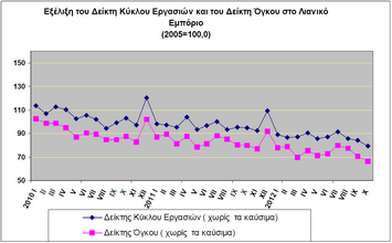 Χωρίς τα καύσιμα, ο Δείκτης Κύκλου Εργασιών, παρουσίασε πτώση κατά 16,5%, έναντι μείωσης 7,7% που σημειώθηκε κατά την αντίστοιχη σύγκριση του έτους 2011 προς το 2010.